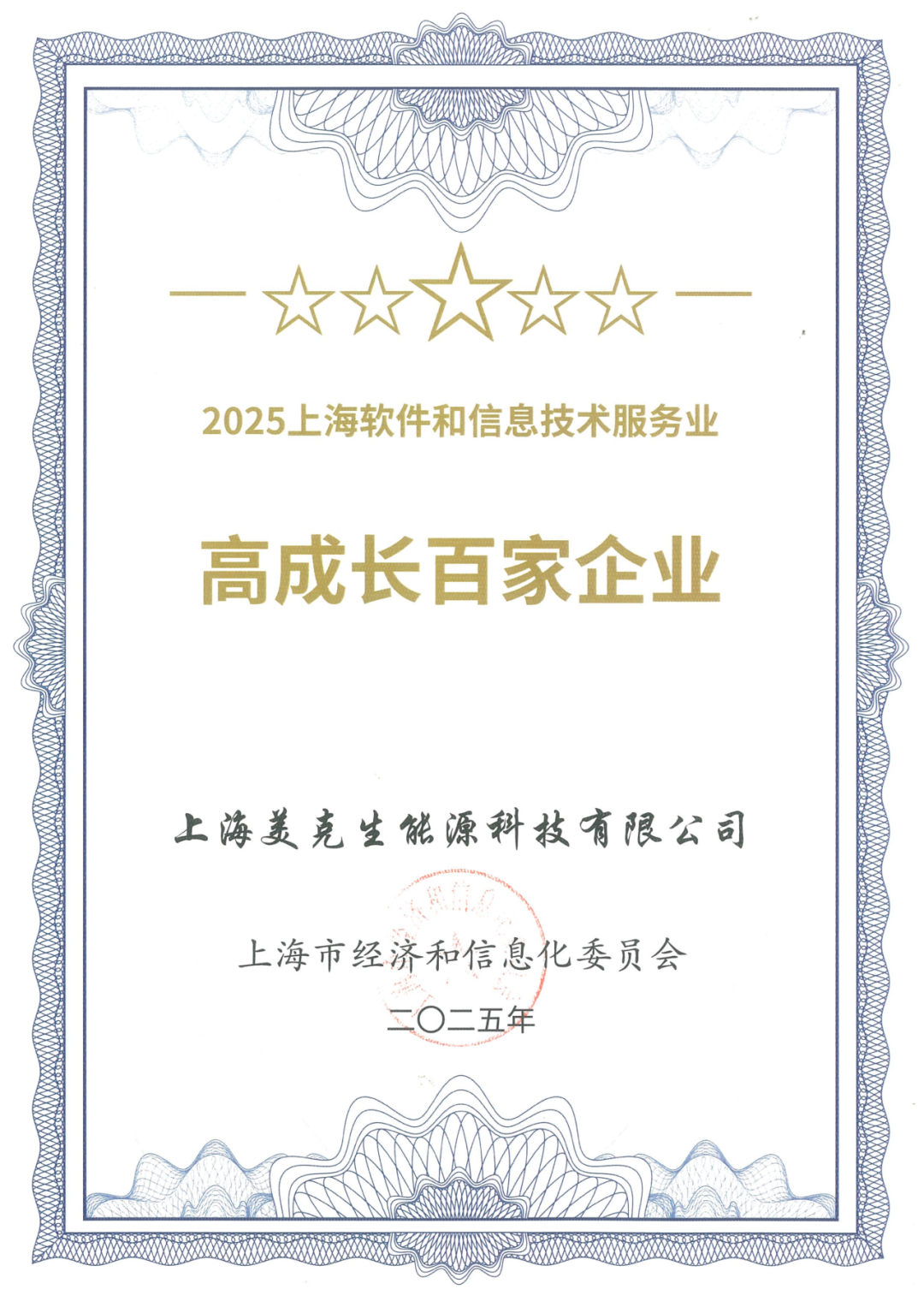 近日,上海市经济和信息化委员会正式发布2025上海市软件和信息技术服务业“高成长百家企业”名单。美克生能源凭借在“AI+储能”领域突出的技术创新和科技转化成果,成功入选这一权威榜单。