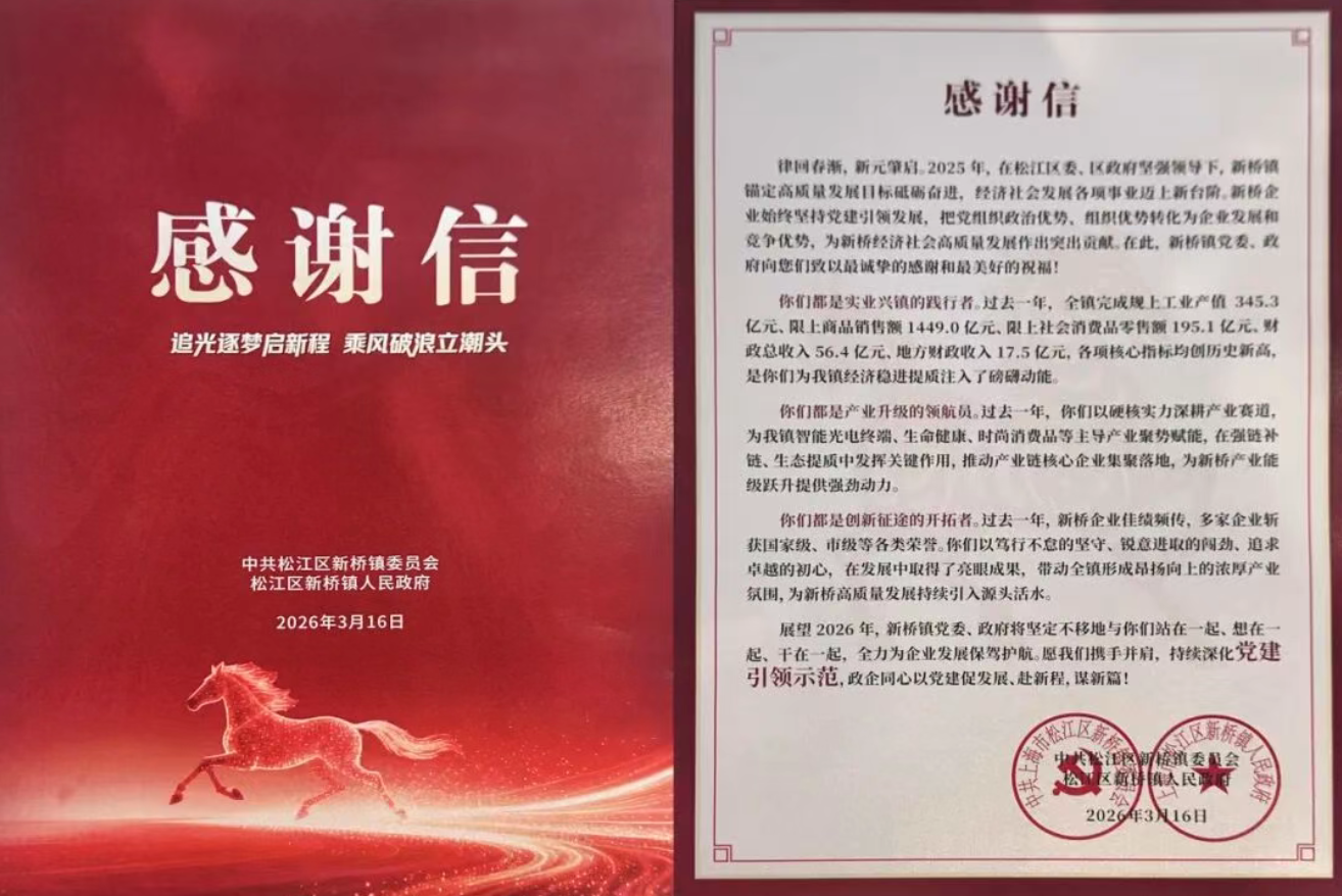此次获奖,既是松江区及新桥镇对美克生能源发展成果的鼓励,也是对公司未来深耕技术、赋能产业的新期许。面向“十五五”新征程,美克生能源将继续扎根松江、面向全国,以更强的技术自信和创新自觉,持续推动绿色能源数字化转型,为构建新型电力系统、实现国家“双碳”目标贡献更多智慧与力量。